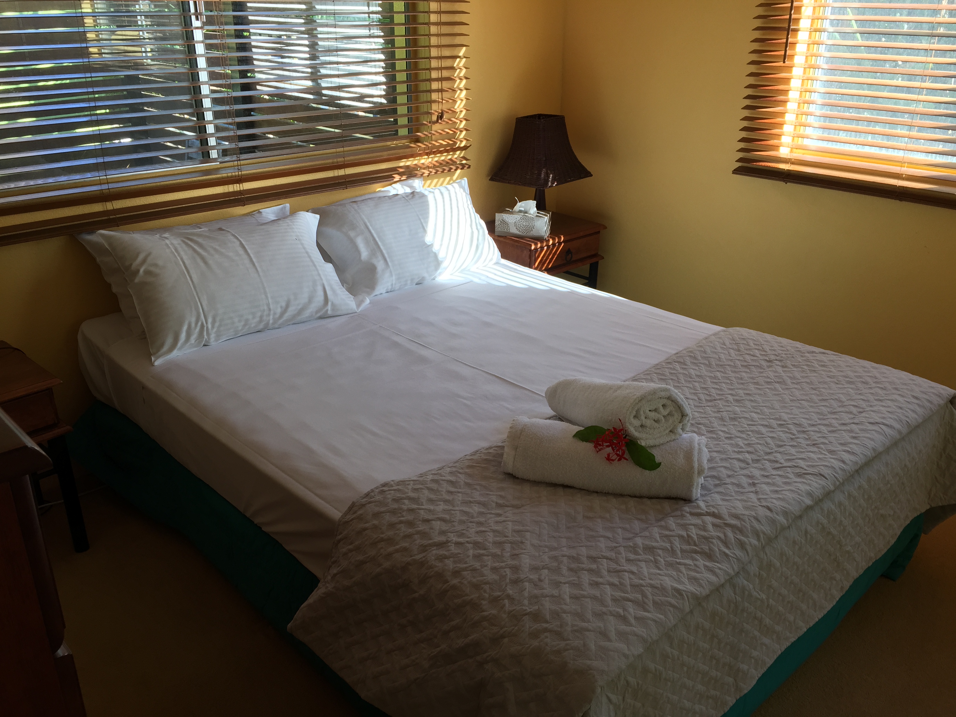 Our one bedroom units have everything you will need for a comfortable stay on this serene tropical island. Fully equipted with wifi, Smart TV, fully air conditioned, and a private patio for relaxing. The stylish units feature an open living and dining and your own kitchenette to give you all the comforts of home. The unit has a queen sized bed with a sofa bed in the lounge room, along with a baby cot on request.